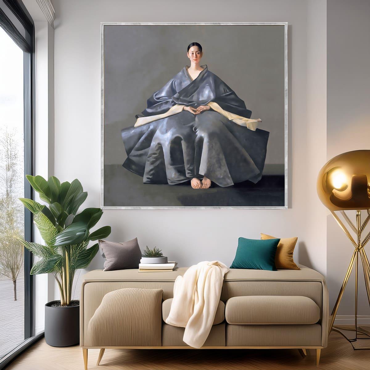 Gri Elbiseli Kadın Yağlı Boya Dokulu Tablo