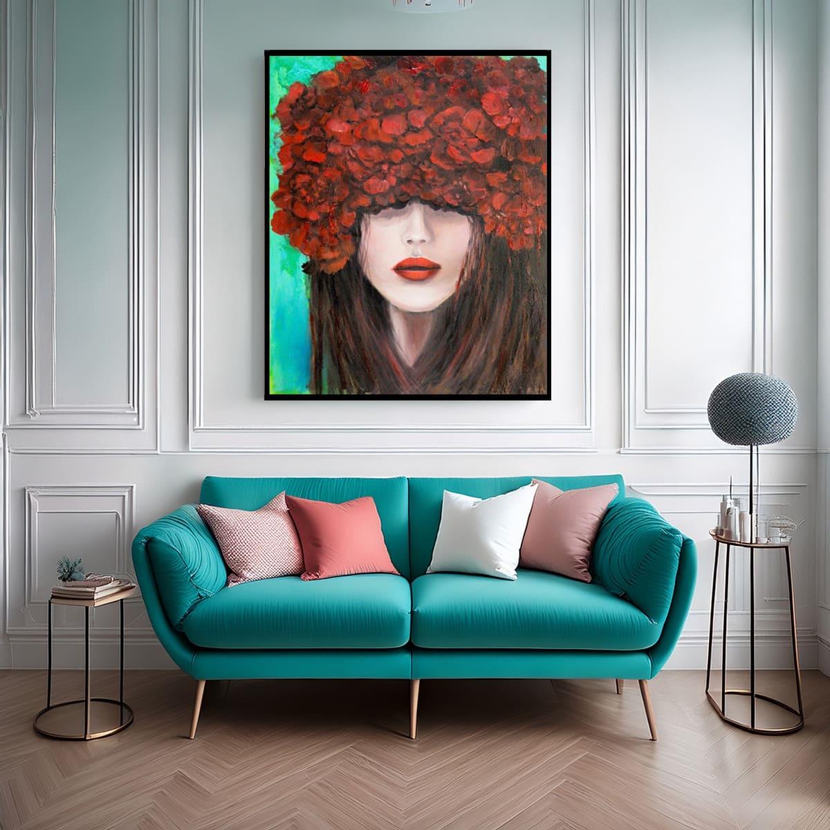 Kırmızıda Gizlenen Kadın Yağlı Boya Dokulu TabloYağlı Boya Dokulu Kadın Temalı TablolarTablolife
